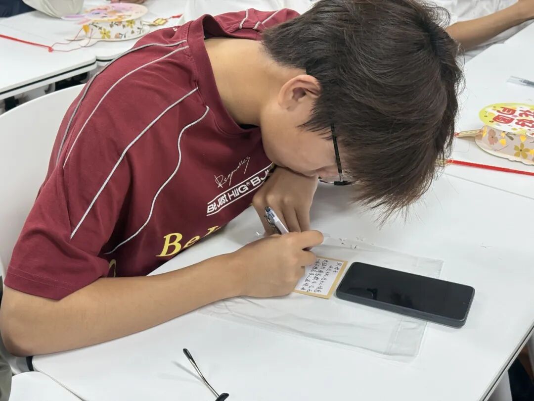 活动的尾声,“明月寄相思”环节为这场文化之旅注入了最深沉的温情。同学们在特制的明信片上,写下心中的牵挂。方寸之间,纸短情长,这些满载深情的明信片将被统一寄出,让思念跨越山海,温暖抵达。