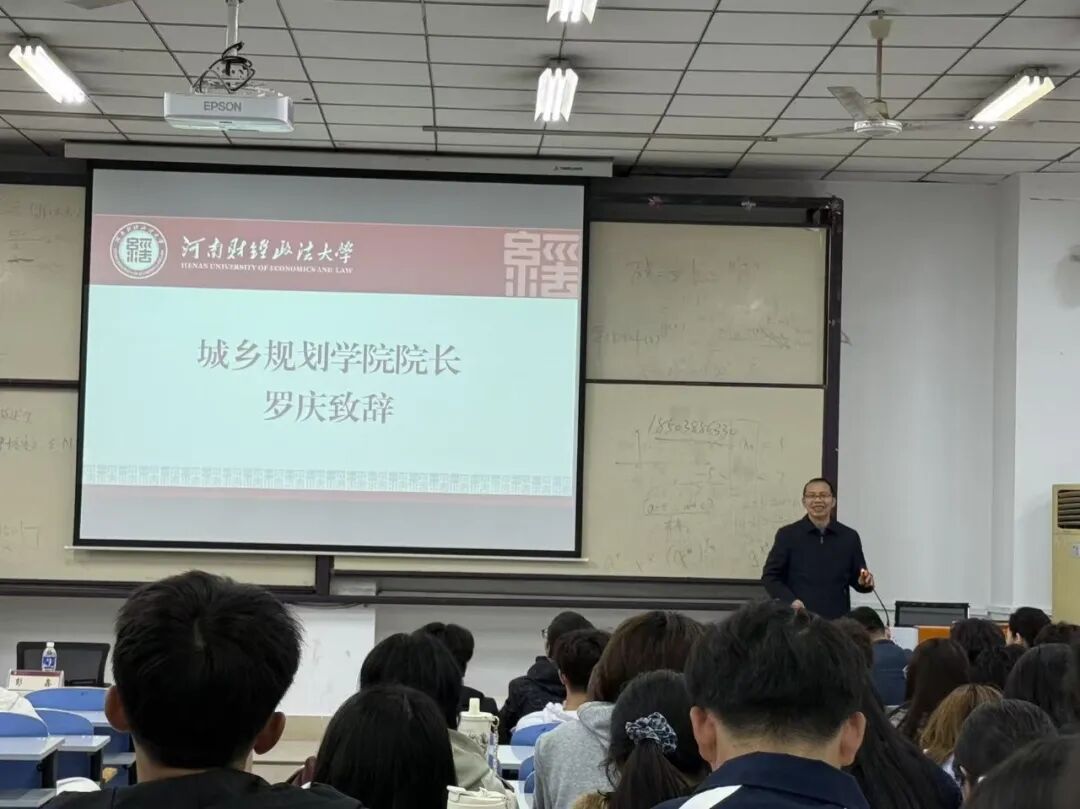 城乡规划学院院长罗庆在致辞中向新生表示欢迎,并进一步介绍了专业发展方向,聚焦城乡规划与可持续发展,鼓励同学们践行“博洽、通达、弘毅、致远”的校训精神,为未来城市建设贡献力量。