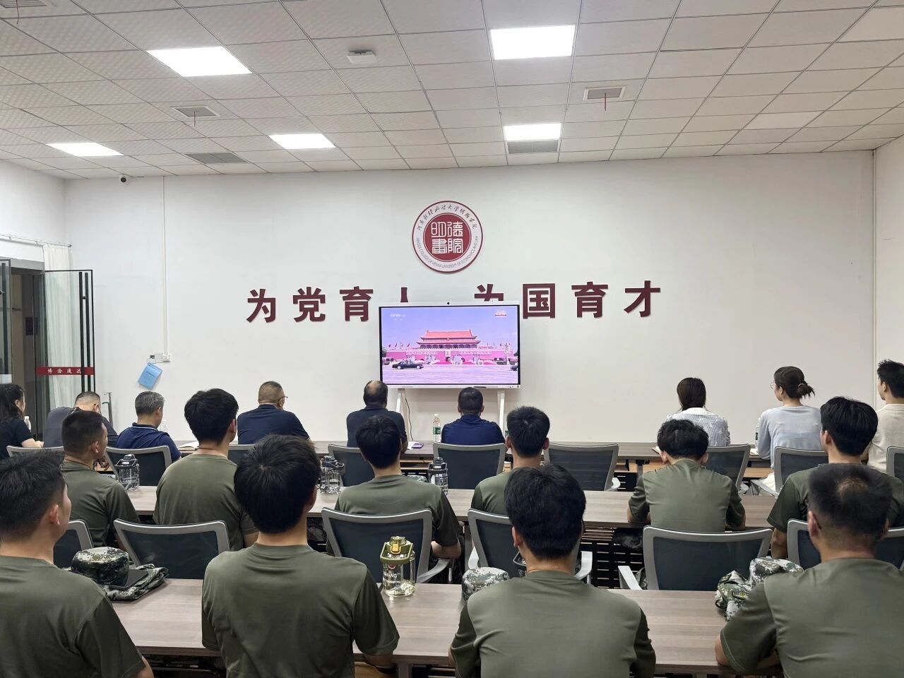 观看现场气氛庄重而热烈。师生们目光专注,当受阅部队迈着铿锵有力的步伐依次通过天安门广场,各类先进装备整齐列阵、震撼亮相时,现场不时响起由衷的赞叹。大家深刻感受到人民军队的威武气势与国家的蓬勃发展,民族自豪感与使命感油然而生。