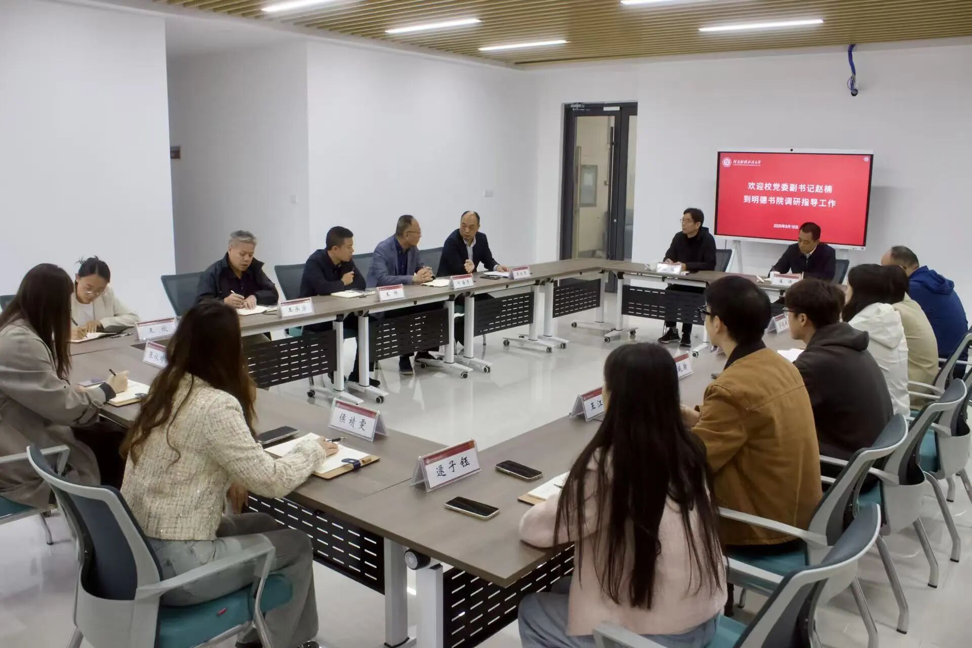 9月19日上午,校党委副书记赵楠到伟德体育官网调研指导工作,书院领导班子及全体辅导员参加座谈。会议由校党委学生工作部部长崔炜主持。