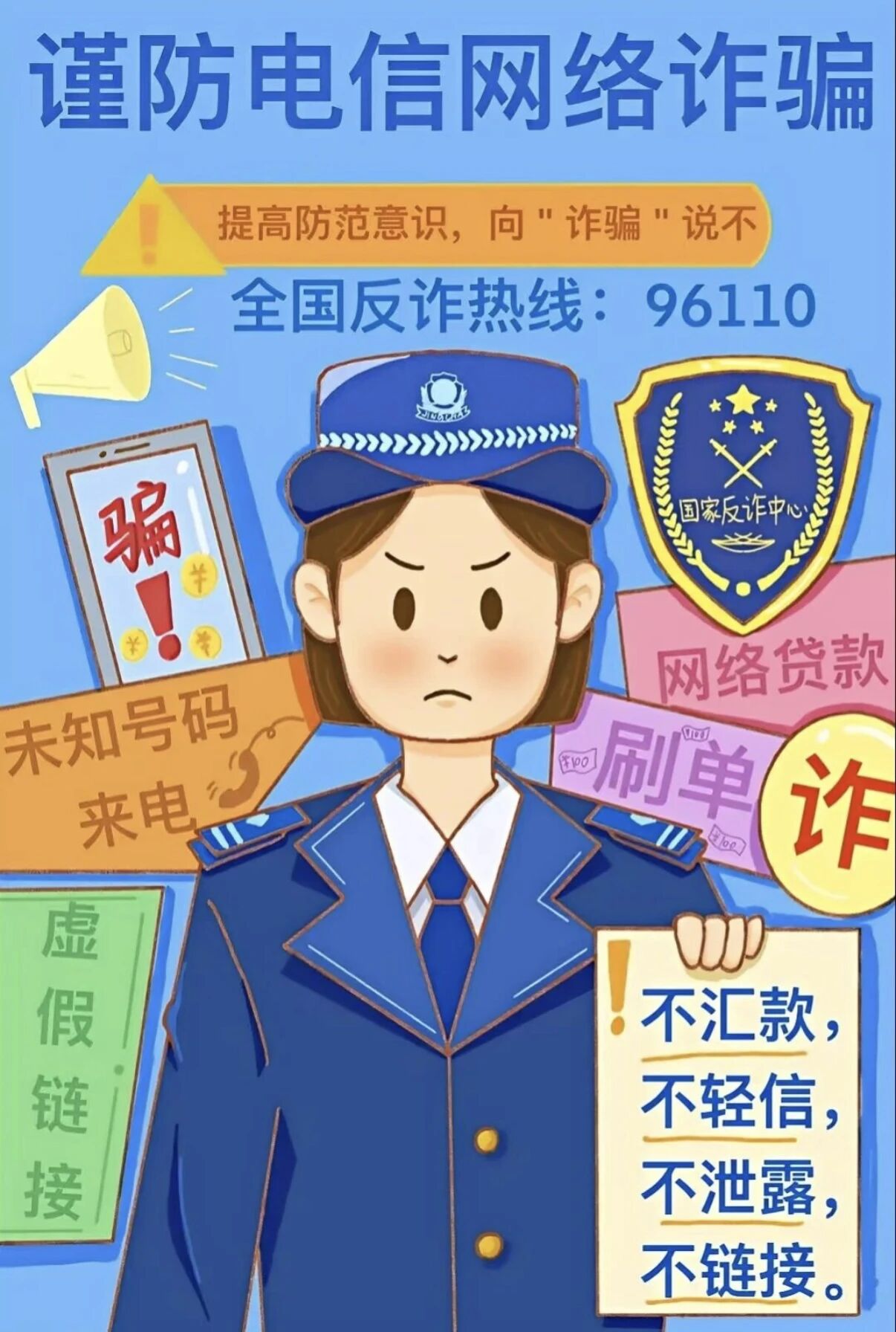 1.下载并注册国家反诈中心“APP”,从源头上防止被骗。如遇有可疑情况,请及时报警。