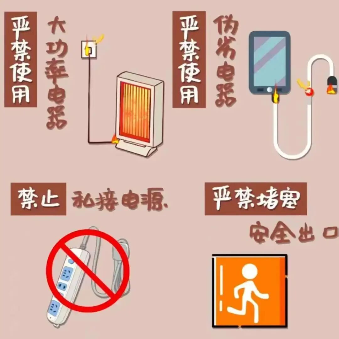 宿舍人员密集,线路负荷有限。使用大功率电器极易导致电线过热、短路,从而引发不可控的火灾事故,严重威胁大家的生命财产安全。请务必遵守规定,杜绝侥幸心理,切勿因一时方便酿成终身遗憾。